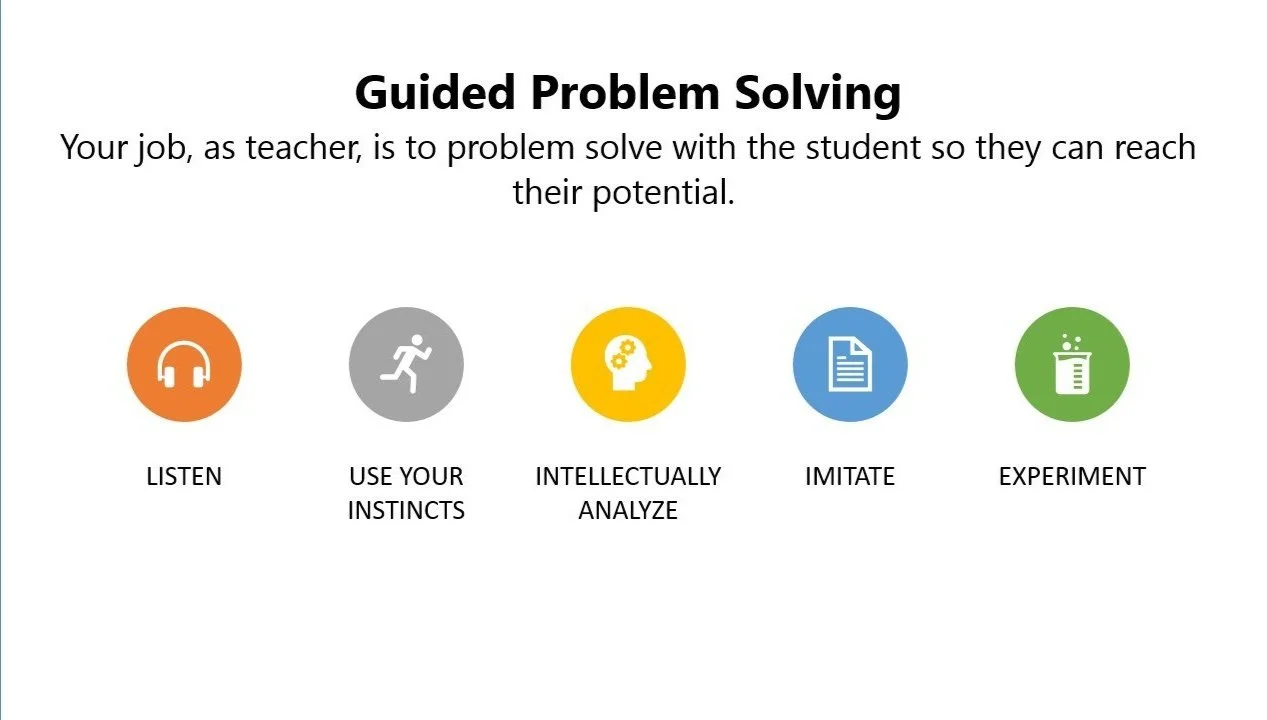 When teaching with guided problem solving, the ultimate goal is for the student to develop autonomy, critical thinking, and problem-solving skills in their playing. It’s not just about fixing immediate issues but about teaching the student how to identify and solve problems on their own. Through a combination of active listening, instincts, analysis, imitation, and experimentation, the teacher empowers the student to overcome technical and musical challenges while also nurturing their artistic growth.